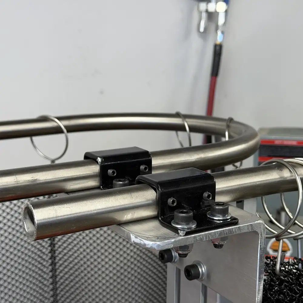 Chaque rideau est fabriqué en treillis d’acier galvanisé soudé de calibre 19 avec des ouvertures de 1/4”. Le treillis est doté d’un revêtement noir mat qui réduit l’éblouissement, résiste à la corrosion et supporte la chaleur et les étincelles souvent présentes en milieu industriel. Cette combinaison garantit une durabilité à long terme tout en gardant la ligne de visée de l’opérateur claire et dégagée.