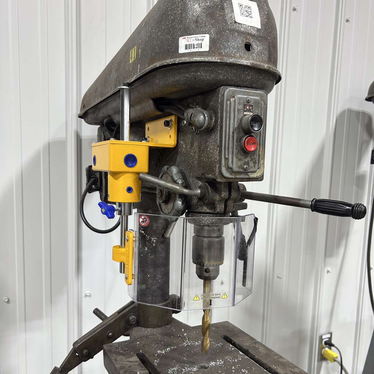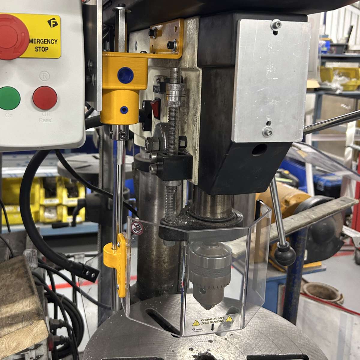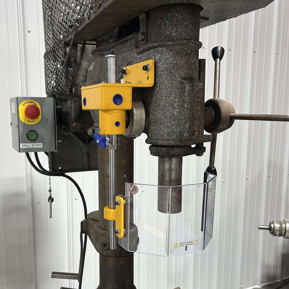 Ce protecteur de mandrin de perceuse à colonne aide à prévenir les éjections en empêchant les clés de mandrin d’être accidentellement laissées à l’intérieur du mandrin.